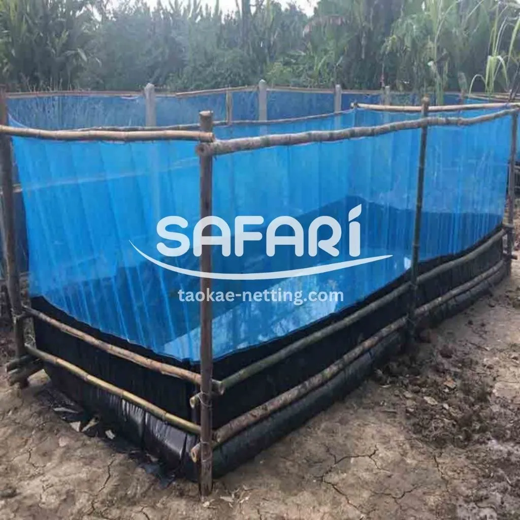 ใช้ตาข่ายกระชังร่วมกับพลาสติกปูบ่อ